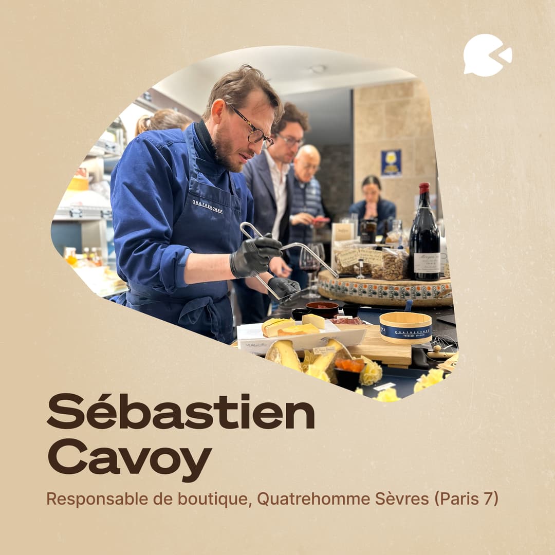 Dans les boutiques de la maison où il œuvre depuis une décennie, Sébastien Cavoy est un artisan, un formateur, un bâtisseur d'avenir. Ses mains façonnent aussi bien les fromages qu'il affine avec soin que le destin de celles et ceux qu'il guide avec la même passion qui a forgé sa propre carrière. Il est des personnes dont l'ombre s'étend bien au-delà du simple geste ; celui qui, en dépit de sa justesse et de sa rigueur, se perd dans la répétition des jours. Sébastien a intégré cette lignée, celle des Quatrehomme, dans les traces de Marie et d'Alain, auprès desquels il affûta naguère ses armes, et écrivant, aux côtés de Maxime et Nathalie, les nouvelles pages d'un récit septuagénaire. Ils sont de ceux dont la discipline dépasse la dévotion pour à la fois toucher un idéal et reconnecter au réel. L'exigence, non pour régenter, mais abolir les frontières imaginaires. Le respect, non pour asservir, mais ressusciter l'humain à l'époque où tout s'achète. Le sens du travail, non pour épuiser, mais faire sien le savoir qui émancipe et qui délivre.